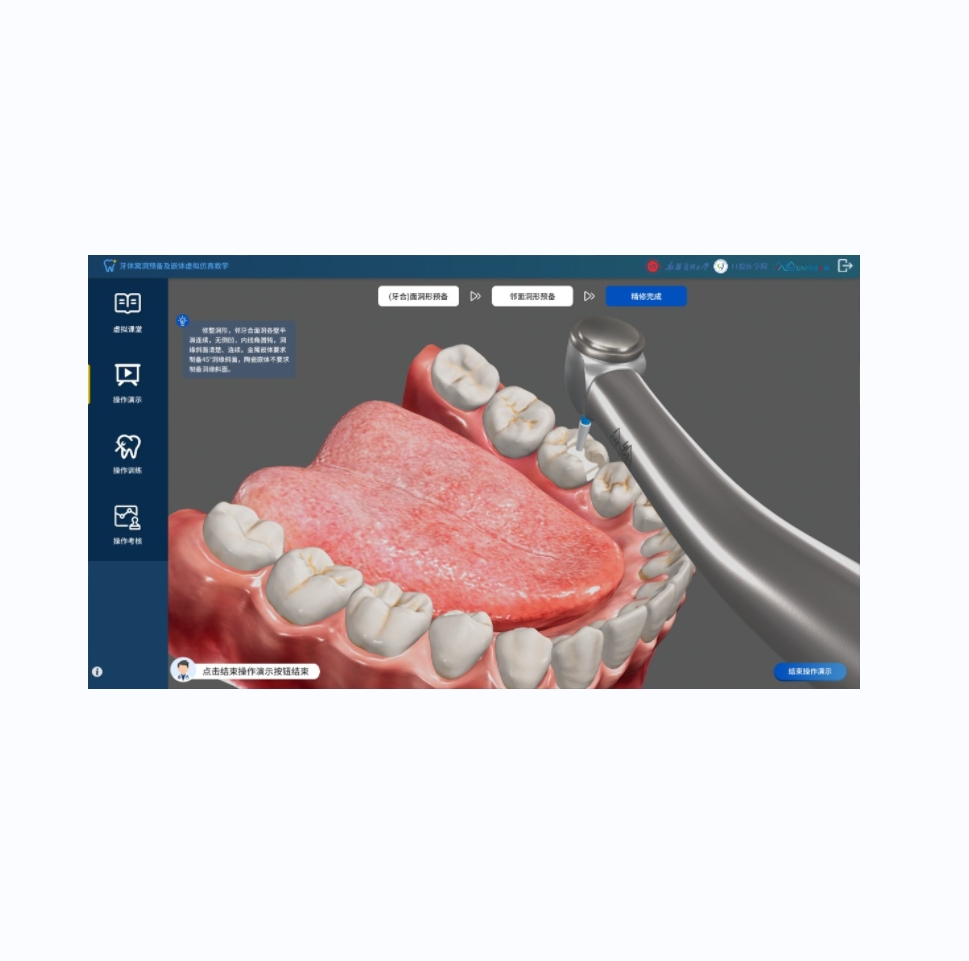 利用虚拟仿真技术及多媒体的图、文、声、像技术结合,学生通过线上和线下理论学习,结合虚拟仿真操作实训双重学习,提高学生学习的积极性和主动性,掌握口腔医学生临床操作技能和思维,缩短临床实习的适应期。
